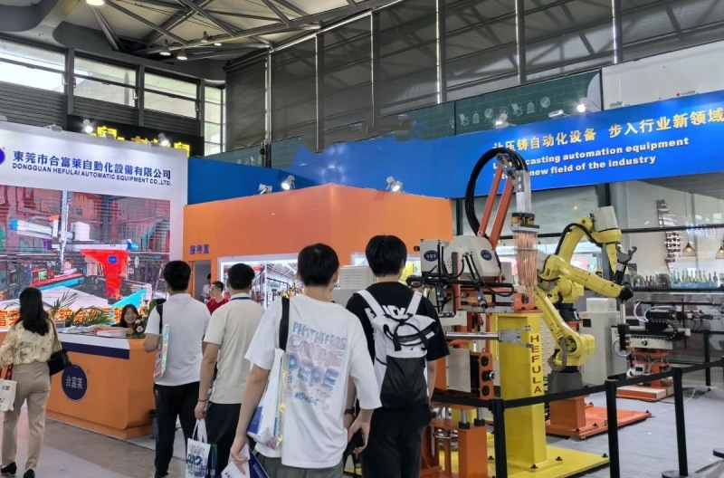 ![]() 合富萊參展團(tuán)隊(duì),左5為公司技術(shù)總監(jiān)楊炳榮先生 2025年7月16日,全球壓鑄行業(yè)年度盛會(huì)“第十九屆上海國(guó)際壓鑄暨有色鑄造展”在上海新國(guó)際博覽中心盛大啟幕。作為壓鑄行業(yè)最具影響力的展會(huì),本屆展會(huì)匯聚了來(lái)自世界各地的580余家參展企業(yè),展出面積達(dá)49,200平方米,覆蓋四大展館,全方位、多層次地呈現(xiàn)了壓鑄產(chǎn)業(yè)鏈的最新技術(shù)與創(chuàng)新成果。 合富萊 作為壓鑄自動(dòng)化領(lǐng)域的標(biāo)桿企業(yè),東莞市合富萊自動(dòng)化設(shè)備有限公司(簡(jiǎn)稱“東莞合富萊”)以強(qiáng)大陣容參展,全面展示其在鋅、鋁、鎂合金壓鑄自動(dòng)化領(lǐng)域的深耕成果與前沿技術(shù),充分彰顯了企業(yè)對(duì)行業(yè)發(fā)展趨勢(shì)的深刻洞察及對(duì)本次展會(huì)的高度重視。 東莞合富萊憑借十余年的行業(yè)積淀,已發(fā)展成為壓鑄自動(dòng)化設(shè)備及整體解決方案的核心供應(yīng)商。此次展會(huì),公司攜多款高性能壓鑄機(jī)械手及機(jī)器人自動(dòng)化壓鑄島解決方案亮相,包括五連桿式高速給湯機(jī)、連桿式單伺服噴霧機(jī)、伺服取出機(jī)、熱室伺服噴取一體機(jī)、壓鑄島等核心產(chǎn)品,全方位滿足客戶對(duì)效率、精度與穩(wěn)定性的嚴(yán)苛需求。