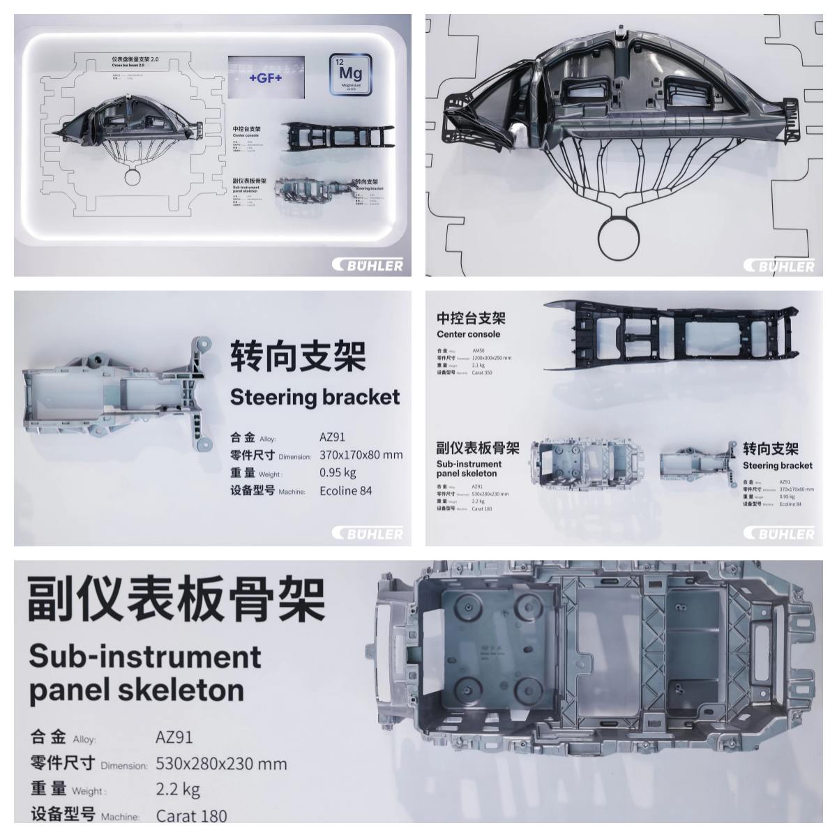 布勒壓鑄產(chǎn)品經(jīng)理 王思寧 布勒在展會現(xiàn)場發(fā)布基于Carat 610壓鑄島實測的碳排放報告:在ISO 14067認證體系下,采用布勒壓鑄工藝生產(chǎn)后地板的碳排放較傳統(tǒng)沖壓-焊接工藝下降35%。布勒壓鑄產(chǎn)品經(jīng)理王思寧在壓鑄產(chǎn)業(yè)鏈技術發(fā)展論壇指出,“減碳不是選擇題,而是出口通行證”。報告同時從原材料溯源、工藝優(yōu)化到綠電替代,給出了可量化的下一步減碳路徑,為國內(nèi)企業(yè)提前應對碳關稅提供落地方案。 從排放結構看,鋁錠碳排強度常年維持在40%左右,能耗占比高達60–70%。一旦征稅,出口產(chǎn)品須接受碳足跡審查,若數(shù)據(jù)不達標,競爭力將瞬間下滑。布勒已將碳排放指標納入月度考核,并聯(lián)動全球工廠統(tǒng)一設定減排路徑。行業(yè)若要守住出口份額,唯有提前布局——從原料溯源、工藝優(yōu)化到能源結構升級,每一步都要把碳成本算進賬本。 碳關稅不是終點,而是壓鑄業(yè)邁向綠色制造的起點。 新市場 Carat 920將用于鎂合金一體化后地板生產(chǎn) 在布勒鑄件展臺,展品從一枚車輪、一只方向盤,延伸到變速箱、門框、門架,并且鋁、鎂雙材料成果全線亮相;可以說,一輛車的“壓鑄版圖”在展臺上被完整拆解。