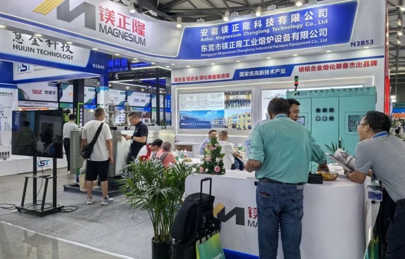 ![]() 鎂正隆參展團隊合影 近日,第十九屆上海國際壓鑄暨有色鑄造展在上海新國際博覽中心圓滿落幕。 在本屆展會上,東莞市鎂正隆工業熔爐設備有限公司/安徽鎂正隆科技有限公司(以下簡稱“鎂正隆”)全方位呈現了其技術領先的鎂合金定量爐。現場展示的 MD 系列鎂合金定量爐,具備定量精度高、節能環保、維護簡易、使用壽命長等顯著優點,提供了適用于配套200T至9000T壓鑄機的各種型號產品。 鎂正隆的 MD 系列鎂合金定量爐,采用雙室雙泵結構,其中雙泵為一個定量泵和一個轉液泵。這種設計使得定量更加精準,鎂液轉運過程穩定可靠。與傳統的單泵結構相比,該結構大幅提高了壓鑄產品的良品率,同時有效節約了原材料消耗。此外,該系列采用了鎂正隆專屬的發明專利——直通式定量泵,這種設計可以實現鎂液的快速而準確地澆注到料筒中,減少熱量損失,從而提升成型品質。與傳統鵝頸式定量泵相比,直通式設計避免了因鎂液凝固導致的泵底殼堵塞問題,保障生產的連續性。這不僅減少了維護時間,提高了生產效率,還降低了維護成本。