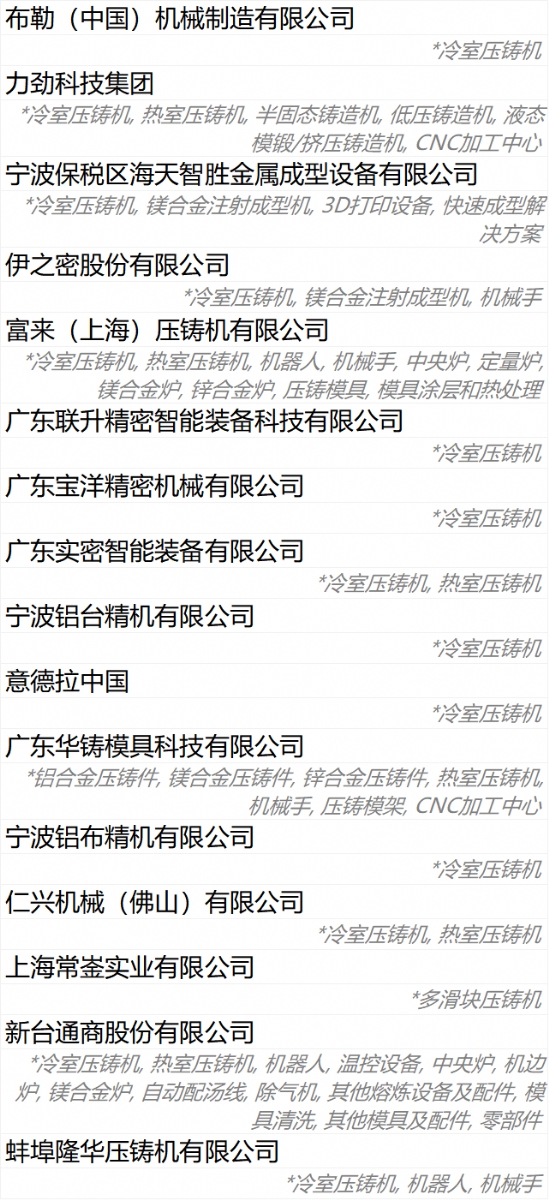 隨著展位預(yù)定工作的持續(xù)推進(jìn),80%展商已確定參展,展商陣容正逐步成型。 壓鑄機(jī)