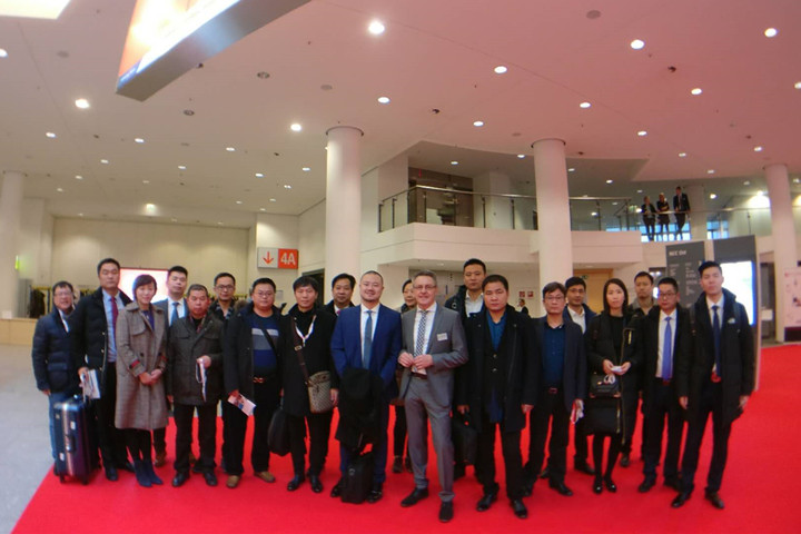 Rolf Keller先生(前排中)接見中國參展團成員 EUROGUSS項目總監(jiān)Christopher Boss表示:“正如官方公布的數(shù)據(jù),本屆展會有642家展商,其中壓鑄件廠商就有217家,占總數(shù)的37%。另外,供應者服務商(上游設備、原材料等——本刊注)比例為41%,后處理廠商比例為22%。在專業(yè)觀眾方面,三天的展會,我們期待來自30個國家的3萬名專業(yè)觀眾前來參觀。” Christopher Boss還介紹了紐倫堡公司全球壓鑄展會聯(lián)動情況,他表示:“除了德國展會外,我也負責與全球壓鑄展會項目,我們從2012年起與FICMES合作中國壓鑄展,2018年與印度ALUCAST協(xié)會合作印度壓鑄展,今年我們還將啟動墨西哥、泰國展覽會。”