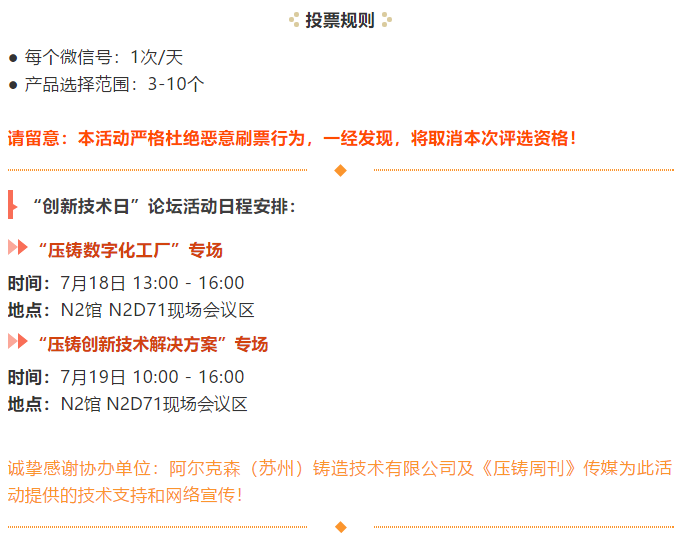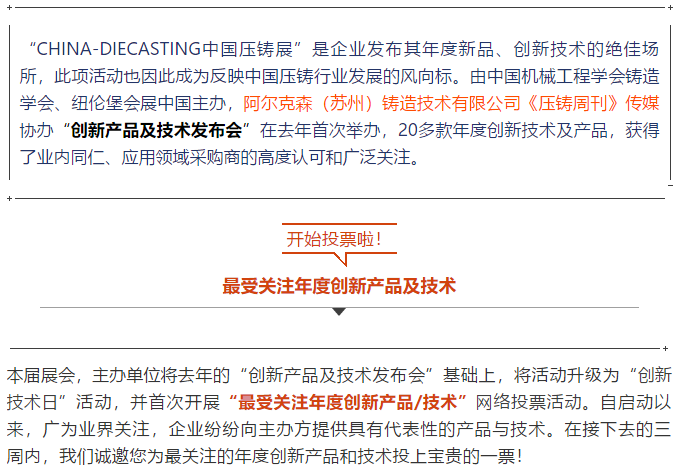 選出您心中的“壓鑄行業年度創新產品及技術”