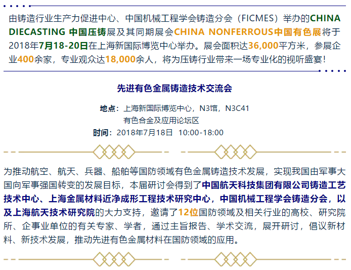 發(fā)表于2018/7/7 21:39:56 中國(guó)壓鑄展有色金屬鑄造技術(shù)交流會(huì)