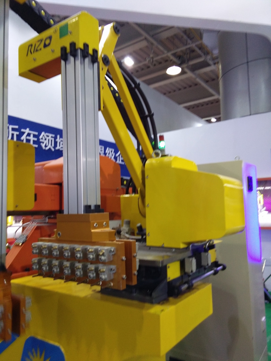 ![]() 深圳日昭新一代的RV噴霧機 給湯機、噴霧機、取件機是最常用的壓鑄機械手,俗稱“壓鑄三手”,具有投資成本小、操作簡易的特點。引進三手是壓鑄廠實現自動化生產的最佳解決方案之一。多年來,勤勞睿智的壓鑄工程師,一直在探索提高機械手速度和效率的創新技術。在過去數年,由“定量泵電機”向“伺服電機+控制系統”驅動的演變,乃壓鑄機械手更新換代的一大革新成果。 深圳市日昭自動化設備有限公司(“深圳日昭”)在鞏固這一成果的基礎上,經過一年多的研究和開發,將“機器人關節減速機(RV)”替代傳統的“蝸輪蝸桿”,成功運用于壓鑄機械手,推動驅動系統核心零部件應用的革新,推出全新一代的伺服RV機械手產品,涵括伺服RV取件機、伺服RV磕頭噴霧機、伺服RV五連桿給湯機等產品。新一代機械手的每一關節,均由一對“伺服電機+機器人關節減速機(RV)”組成。 深圳日昭是一家極具活力和創新能力的自動化設備企業。當年,機械手換代改伺服時,深圳日昭就率先在行業內推出全伺服壓鑄機械手產品。“日昭雖然不是成立時間最長的壓鑄自動化設備企業,但是我們一直在努力成為行業領頭羊,推動和引領壓鑄自動化行業的發展,”深圳日昭總經理胡安喜先生表示:“因此,在企業快速發展的同時,我們不斷加強人才引進及培養、技術研發的投資,使之與企業發展的步調一致。”