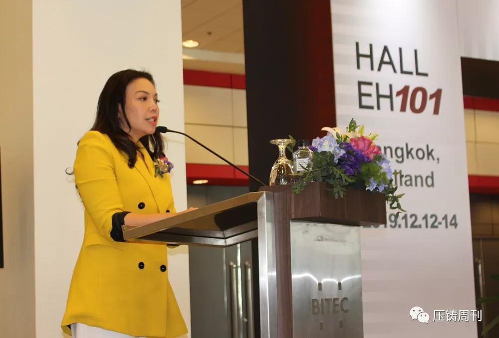 泰國會展局展覽部總監 Kanokporn Damrongkul 女士(Kelly) 致辭 本次展會參展企業有鑄造、壓鑄設備、熔煉、熱處理、工業爐、冶金設備、模具、表面處理、周邊設備等多個行業。其中,壓鑄、鑄造設備企業包括布勒(中國)機械制造有限公司、意特佩雷斯壓鑄設備(上海)有限公司、力勁機械國際有限公司、寧波宜科信機械有限公司、尚富工業股份有限公司、IDRA Srl等。