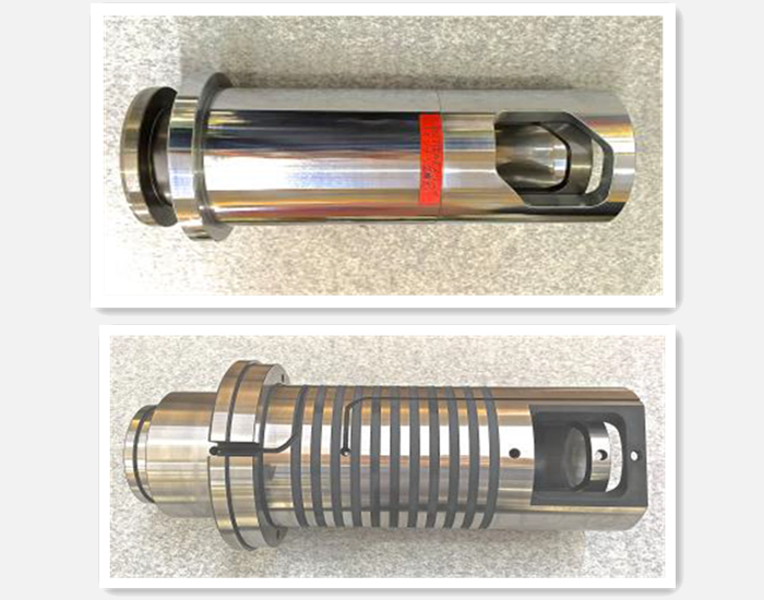 壓室內(nèi)層(上圖)及裝配好的一體壓室(下圖) 壓室的研究開發(fā)部分,在國外,比如在日本,陶瓷壓室已經(jīng)使用了20、30年。但是,實際上,在國內(nèi)可能還沒有人去從事這方面的研發(fā)和應(yīng)用工作。為此,我呼吁,類似壓室,以及其他周邊配件和原輔料(如涂料),或者其他各種裝備自動化,等等,都需要我們進(jìn)一步跟進(jìn)和研究。