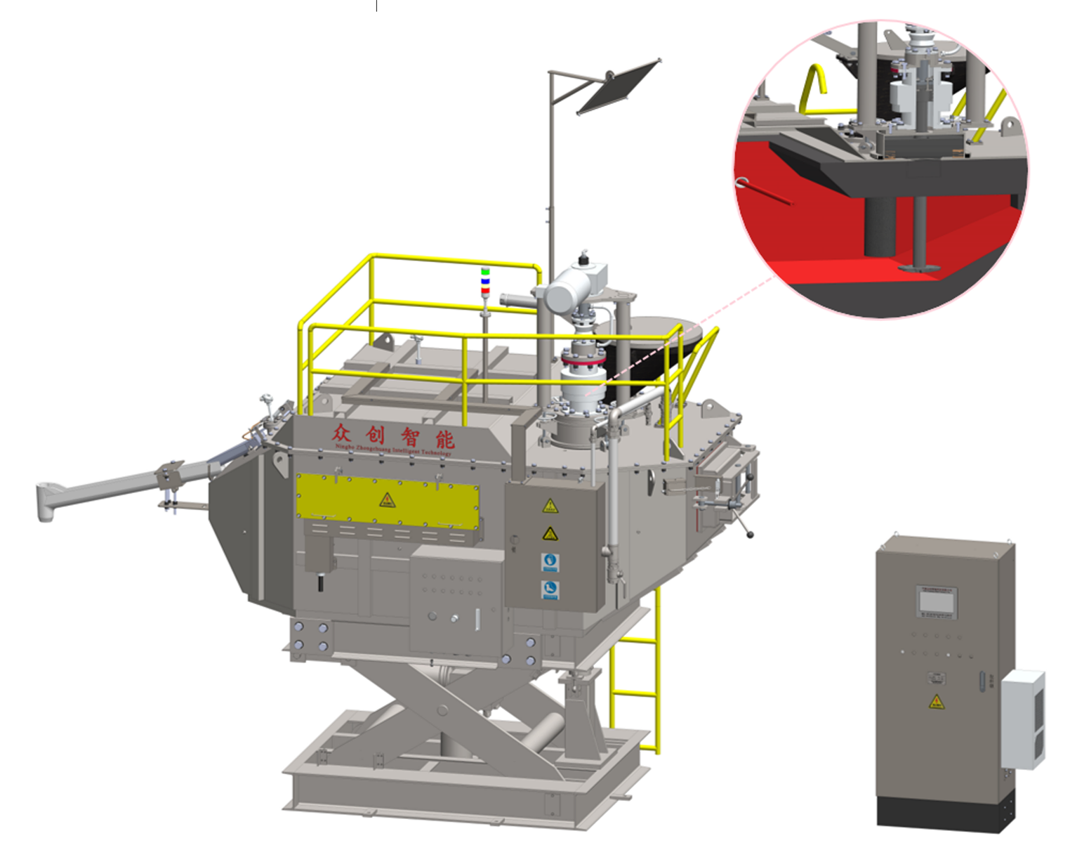 創新技術 基于非間斷式在線凈化技術研制"高純鋁液"的智造裝備/連續在線除氣定量爐 申報企業:寧波眾創智能科技有限公司 創新背景 基于節能減排和降低生產成本的可持續性發展需求,同時為了滿足汽?、3C等領域對鋁合?部件高力學性能和可釬焊的后續加工需求,國際知名品牌新能源汽?及頂級3C產品制造商提出了將鍛造件改為鑄造件的設想,并為此進行了多年的理論計算和實踐驗證。6系鋁合?(鍛造鋁)具有良好的熱傳導和機械加?性能,但同時也極易氧化。因此,如何有效地將6系鋁合金應?于鑄造件成為了頭部企業技術攻關的關鍵。其主要?段是通過控制氧?和氫?等技術措施,來解決鋁合?溶液在氧化過程中產生的夾渣問題,以及在冷卻成型過程中可能出現的夾渣和縮孔問題。