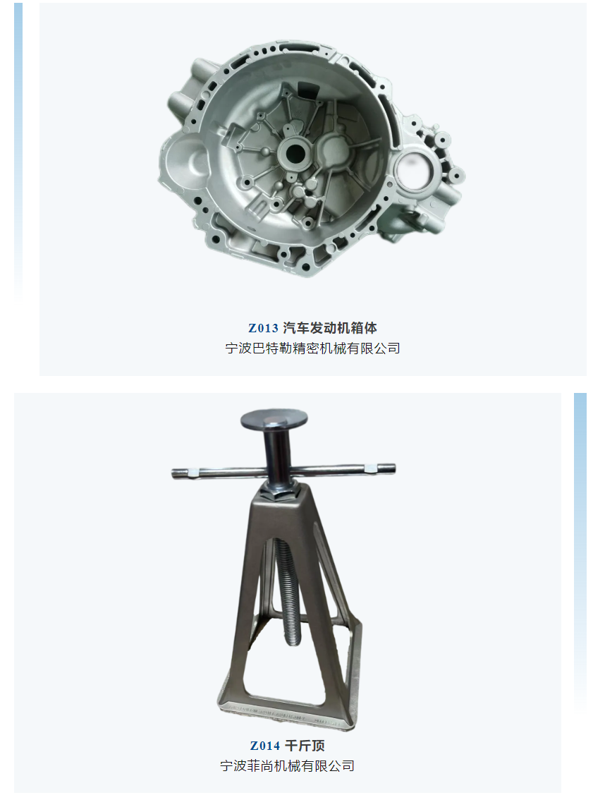 ![]() 2024上海國際有色壓鑄展 (CID&CNF) 將于7月10-12日在上海新國際博覽中心舉行,“鑄件嘉年華”活動將再度華麗登場,引爆全場! 本屆展會將在以往“精品鑄件鑒賞”及“優質鑄件評選及展示”基礎上,增加“技術小舞臺”,邀請參與活動的模具設計及技術人員與現場人員互動交流,分享在設計和生產加工過程中的心得經驗。更多精彩,敬請期待! 鑄件嘉年華 鑄件展示區 鑄件展播