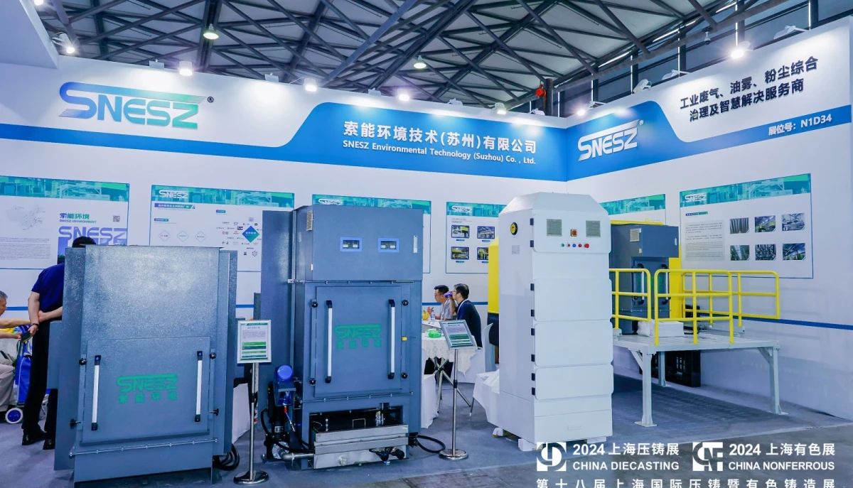 ![]() 索能環境參展團隊 2024年7月10-12日,第十八屆上海國際壓鑄暨有色鑄造展在上海新國際博覽中心成功舉辦。本屆展會以“新能源汽車發展構建壓鑄全球化新格局”為主題,展出面積3.69萬平方米,吸引了470余家參展單位,來自全球60+國家及地區的有色、壓鑄行業及相關應用領域專業觀眾蒞臨參觀。 本屆展會中,專業環保設備制造商——索能環境技術(蘇州)有限公司(簡稱:索能環境)再度參展,連續多年為行業帶來工業廢氣、油霧、粉塵綜合治理及解決方案。 索能環境攜多款主打產品驚艷亮相,包括壓鑄機油霧凈化設備、汽車總裝線單機除油設備以及熔化爐及粉塵除塵設備等。這些產品均源自經驗豐富的環保設計研發團隊,擁有自主研發專利,具備模塊化裝配、處理風量大、節能高效、濾芯可清洗反復利用等顯著優勢。同時,通過視頻演示客戶案例,使現場觀眾更直觀地了解到環保治理的重要性。