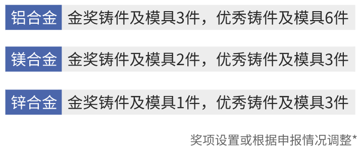 2 優質壓鑄件評選及展示 “優質壓鑄件評選及展示活動”作為中國壓鑄界的標桿活動,2024年共有35家企業的48件鑄件參與評選,最終評選出金獎鑄件及模具各6件,優秀鑄件及模具各12件,展現了行業頂尖水平。2025年,活動再度升級,首次按鋁、鎂、鋅材質分類評獎,精準挖掘不同材質的獨特價值,誠邀更多企業攜創新鑄件參與,共鑄行業未來!
