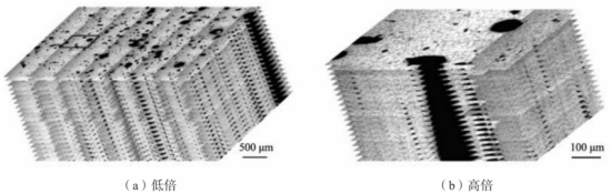 圖3 ADC12壓鑄件中氣孔、氣縮孔和縮孔的三維形貌