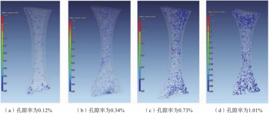 圖2 疲勞試樣內部微觀孔洞的三維X射線斷層掃描結果
