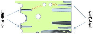 4.曲軸安裝孔、缸蓋安裝孔因氣縮孔控制不好與油道貫通產生的泄漏問題,及組織致密性差導致機械性能不達標。