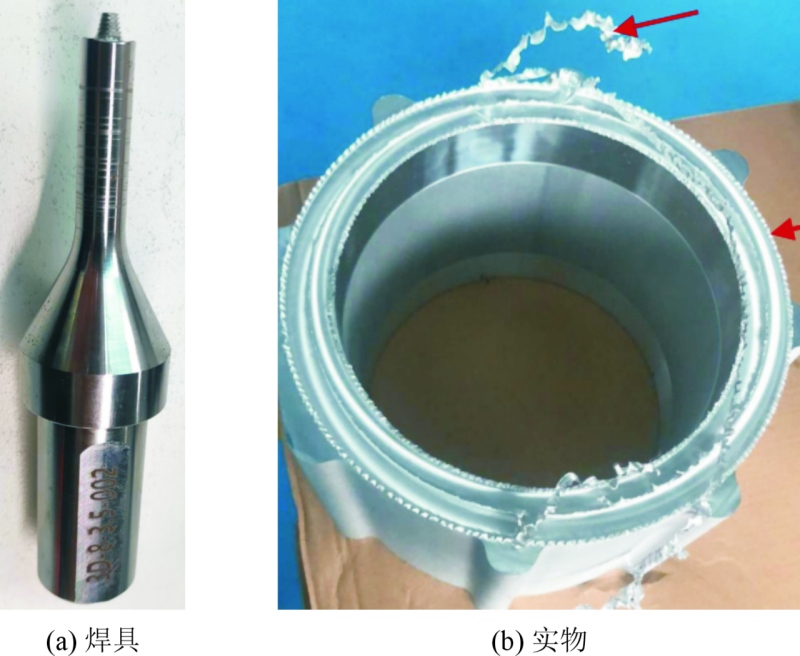 圖4 動軸肩焊具和焊縫實物圖