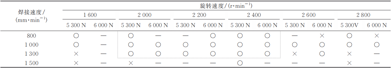 圖6 兩種軸肩焊具的表面粗糙度和板減量對比 表1 焊接參數驗證組合和選用的焊接參數