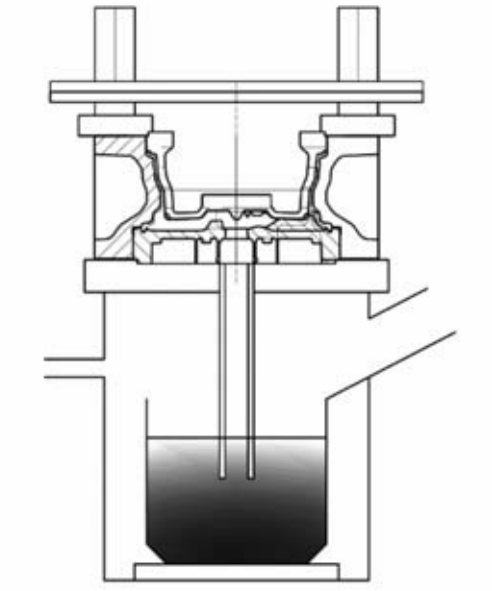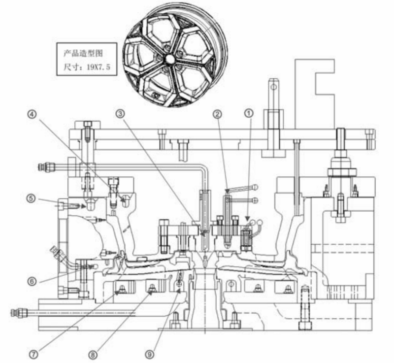 ![]() 原標(biāo)題:低壓鑄造鋁合金車輪模具水冷結(jié)構(gòu)設(shè)計 摘要 低壓鑄造模具冷卻結(jié)構(gòu)由風(fēng)/水霧冷改為水冷,研究了冷卻對模具鑄造的影響。結(jié)果表明,水冷結(jié)構(gòu)不同,作用位置不同,冷卻效果不同。根據(jù)模具結(jié)構(gòu)特點(diǎn),合理布置水冷結(jié)構(gòu)、分布,有效提高了鑄造效率和鑄件產(chǎn)品力學(xué)性能。 我國汽車鋁合金車輪的研究開發(fā)始于20世紀(jì)80年代末、90年代初期,生產(chǎn)方式有重力鑄造和低壓鑄造兩種。重力鑄造由于設(shè)備簡單,對工人的技術(shù)要求相對較低、投資小、生產(chǎn)轉(zhuǎn)換方便而得到廣泛應(yīng)用。重力鑄造是鋁液依靠重力作用流動充填型腔,由于沒有外加壓力,為了獲得致密的鑄件,往往需要利用冒口來補(bǔ)縮。與低壓鑄造相比,重力鑄造的澆冒口較重,材料利用率很低,內(nèi)部組織不致密。進(jìn)入21世紀(jì)后國內(nèi)汽車鋁合金車輪的生產(chǎn),低壓鑄造逐步發(fā)展為主流生產(chǎn)方式。低壓鑄造是在一個密封的容器內(nèi),通入干燥的壓縮空氣,鋁液在氣體壓力的作用下沿升液管上升通過澆道進(jìn)入型腔,并在保持氣體壓力的條件下完成凝固,然后卸除容器內(nèi)的氣體壓力,使升液管和澆道中未凝固的鋁液回到容器中,已凝固的金屬在模具型腔中形成所需的鑄件。見圖1。