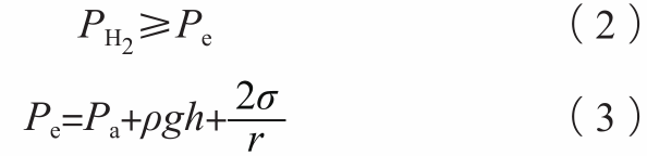 式中:ST為某溫度下氫在鋁液中的溶解度;Ps為鋁液表面的氫氣分壓;Es為氫的摩爾溶解熱;T為鋁液溫度;R為氣體常數;K為實驗常數。 氫原子在熔體降溫過程中不斷析出,但氣泡體積并不是由零逐漸增大的,而是存在最小形核半徑。當局部氫分壓大于最小形核壓力時,宏觀氫氣孔才開始出現并逐漸長大: