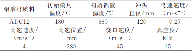 圖4 電機(jī)殼后端蓋澆排系統(tǒng) 表1 模流模擬設(shè)置參數(shù)