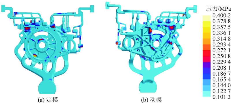 圖7 電機(jī)殼后端蓋殼體型腔氣壓模擬