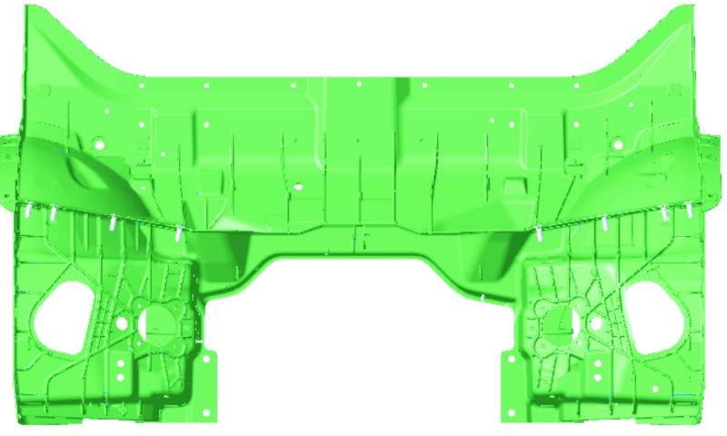 ![]() 原標題:超大型一體化前艙壓鑄件機加工技術研發及應用 當前,輕量化、低碳化和高度集成化成為當前汽車制造的重要發展趨勢。作為一種新型制造技術,一體化壓鑄憑借生產效率高、產品質量穩定、制造成本低等優勢,被廣泛應用于汽車零部件的生產。然而,在一體化壓鑄過程中,鑄件往往會因為收縮、變形等因素,難以一次性達到所需的高精度尺寸要求。為確保鑄件的裝配尺寸,如安裝面、安裝孔、螺紋的位置和尺寸等,能夠嚴格符合設計標準,滿足與汽車其他相關部件的精密裝配需求,一體化壓鑄件必須經過后續的機加工處理。 一體化壓鑄件結構復雜,其中前艙、后地板、電池托盤等零件不僅尺寸大,而且加工特征種類和數量多,特征擺放角度多,給機加工帶來了諸多挑戰。在保證加工尺寸精度和表面質量的同時提高加工效率及穩定性成為亟待解決的難題。國內一體化壓鑄機加技術的應用最早可以追溯到特斯拉上海工廠在Model Y車型后地板的生產中,此后,蔚來、小鵬、高合、賽力斯等造車新勢力,以及長安汽車、大眾、沃爾沃等傳統車企紛紛跟進,開始積極布局和規劃相關技術的應用。從總體情況來看,盡管國內車企在一體化壓鑄機加技術方面取得了一定進展,但真正實現批量生產的應用案例仍然相對較少。 前艙作為一體化壓鑄件的主要組成部件,其內部集成了冷卻系統、發動機控制單元、電氣系統等重要組件,因此對其結構強度、密封性和加工精度有著極高的要求。目前,國內已有部分車企在積極布局與規劃前艙的一體化壓鑄機加工應用技術。然而,國內外現有的針對前艙的機加工方式仍存在諸多不足。如采用龍門加工中心、機器人加工、組合機床(多軸鉆)及激光切割等多工序組合的加工方式,不僅裝夾次數多,容易積累加工誤差,導致尺寸穩定性低和劃碰傷風險高,而且生產線上機械人手爪數量多,成本高昂。此外,多臺設備串聯加工的方式也面臨著因故障及調試問題對整線產能的影響大、過程轉型切換復雜、時間長等挑戰。 基于此,本研究深入剖析前艙機加工技術的實際應用現狀,針對當前存在的技術瓶頸和挑戰提出高效、優質和低成本的加工方案。 圖文結果 前艙壓鑄零件見圖1。該零件輪廓尺寸為1 650 mm×950 mm×630 mm,質量約為57 kg,具有顯著的中間對稱性,且包含210個加工特征,包括28個螺紋孔、136個光孔以及46個加工面;鑄件最高位置精度為基準孔位置精度,為±0.1 mm。基于以上分析可得,相比其他產品,一體化鑄件前艙的機加工難點主要體現在兩個方面:尺寸巨大、加工特征極多,對加工設備的行程要求極大,且要考慮高效加工;復雜、深腔結構需求的加工擺放角度達到了20個以上。尺寸大且精度較高,最高位置精度為±0.1 mm,且夾具尺寸及質量增大,為保證高效加工,夾具需要減重;前艙的材料為免熱處理鋁合金材料,此材料偏軟、伸長率高,導致加工切削力大、易粘刀和熱變形,對刀具要求高。因此,本項目的目標加工設備需要滿足大行程、多角度、高剛性及加工效率高等技術要求,加工夾具需要提升加工剛性才能保證加工效率。
