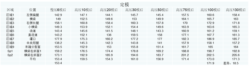 以上實驗證明,熱模慢壓件可以從10件優(yōu)化至6件,并在壓鑄機程序里進行了設定: