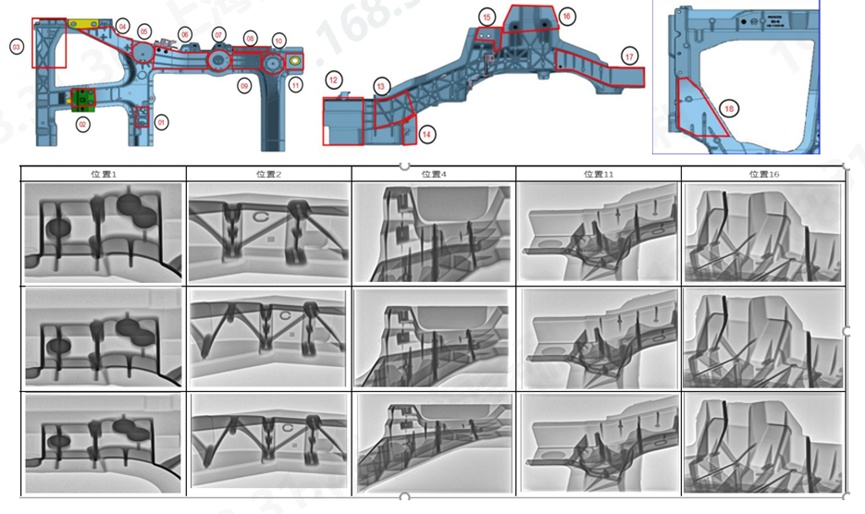 以上都是取的噴涂后的模溫: 慢壓6模后的模溫和100模后的模溫對比差異約12.5度 從慢壓6模后與100模后模溫對比可以看出,溫度差異比較小, ②X光氣孔檢測