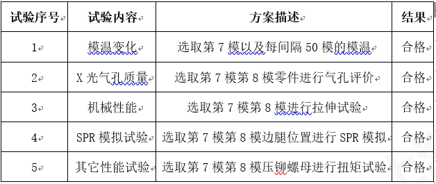 連續(xù)兩個班次的試驗件SPR結(jié)果正常,未出現(xiàn)異常開裂等問題 ⑤性能試驗