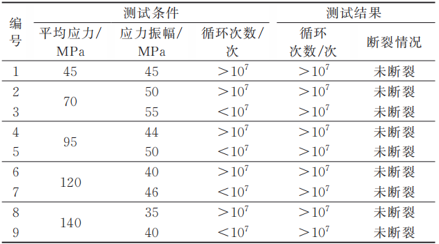 圖8 疲勞試驗 表3 疲勞試驗結果