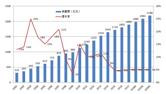 ![]() 我國是制造業大國,在通往“制造業強國”的道路上,模具作為“工業之母”已經和正在發生重大的推動作用。日常生活中的電子產品,以及高速發展的汽車行業,60%~90%的零部件都要依靠模具成型。模具生產水平的高低,已經成為衡量一國產品制造水平的重要標志,在很大程度上決定了產品的質量和研發能力。 然而,模具作為工業的中間產品或過渡產品,因其具有技術密集型、非標準、定制化的特點,使得模具工業企業的整體規模不大。從研究角度看,本科級院校及高職院校鮮有模具專業開設,因此對模具全行業和分類模具的整體發展研究也不多見。若干學者和行業協會整理并講述了本世紀初到2010年前后的模具整體發展情況[1~5]和技術現狀。本課題主要針對近年我國模具行業、尤其是壓鑄模具的行業特點和現狀進行分析,并重點闡述了該行業所面臨的機遇與挑戰。 一、我國壓鑄模具行業現 模具行業整體現狀 進入新世紀以來,我國模具行業發展強勁,國內壓鑄模具總產量僅次于美國,躍居世界第二位,成為名副其實的壓鑄大國。中國模具工業協會統計,中國模具制造廠約有3萬余家,從業人員超過100萬人。2001年至今,我國模具行業銷售額一直以年平均10%以上的增長速度快速發展,見圖1。至2017年,我國模具銷售總額1890億元,為2001年的6倍。2013年至2017年,我國模具總銷售額的年均復合增長率達到6.1%,隨著各項智能制造升級策略的推進,按5%的年均復合增長率保守估計,到2020年我國模具銷售額將達到2188億元。