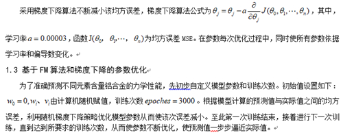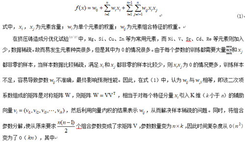![]() 摘要:通過查閱現(xiàn)有擠壓鑄造研究的文獻,以不同合金元素含量鋁合金的力學性能作為訓練數(shù)據(jù),結(jié)合帶有因子分解機(Factorization Machine, FM)的多項式回歸模型,通過機器學習算法,以梯度下降策略對模型進行訓練學習。然后,以合金的元素含量作為輸入條件,預(yù)測該成分下合金的力學性能,并與試驗力學性能作對比驗證。驗證集測試表明,該模型能較好地預(yù)測不同元素含量鋁合金的抗拉強度、屈服強度、硬度和伸長率等性能指標。 傳統(tǒng)的金屬材料開發(fā)流程首先需要設(shè)計材料成分,進行合金制備成形后通過物理和化學試驗(如拉伸試驗、硬度測試、沖擊試驗、抗腐蝕測試等)測定該成分及工藝條件下合金的性能,并通過不斷重復(fù)上述步驟來確定最優(yōu)組分,從而制備出高性能合金。這樣的研發(fā)流程通常花費大量材料、設(shè)備、能源等,且研發(fā)周期較長。 機器學習或深度學習致力于研究如何通過計算手段,根據(jù)已有的輸入數(shù)據(jù)進行學習,利用經(jīng)驗來改善系統(tǒng)自身的性能。其主要思想是挖掘所需數(shù)據(jù),并將數(shù)據(jù)“投喂”給普適算法,建立自己的邏輯。機器學習的應(yīng)用已遍及人工智能的各個分支,如專家系統(tǒng)、自動推理、自然語言理解、模式識別、計算機視覺、智能機器人等領(lǐng)域。機器學習在焊接、沖壓等材料加工方面已有應(yīng)用。擠壓鑄造是一種使液態(tài)合金在高機械壓力下凝固而獲得高致密鑄件的先進近凈成形技術(shù),雖然研究者進行了大量的擠壓鑄造合金研究,優(yōu)化其合金化元素,但是,機器學習法進行擠壓鑄造鋁合金設(shè)計的研究尚未見報道。 本課題收集了現(xiàn)有擠壓鑄造文獻中的合金元素含量作為特征,以力學性能作為輸出變量,建立帶有因子分解機的多項式回歸模型,基于機器學習算法,訓練學習出出擠壓鑄造鋁合金的元素含量和力學性能的相關(guān)性模型。對該模型輸入合金元素含量,使用試驗結(jié)果對計算力學性能進行了對比驗證,旨在為合金的開發(fā)提供參考。 一、基于FM算法的機器學習模型 1.1、成分優(yōu)化試驗?zāi)P图八惴?/span> 合金元素對力學性能的影響,既要考慮該元素的影響,也要考慮元素間因冶金反應(yīng)而生成的金屬間化合物的影響。基于上述原理,模型對單個元素變量賦予權(quán)重系數(shù)外,對兩元素組合特征也賦予了權(quán)重,因此建立了如下的多項式回歸模型。