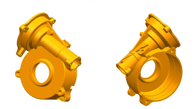 圖13:實際生產鑄件 3、結論 根據水泵殼體結構要求,設計合理壓鑄方案,將壓鑄工藝與數值模擬技術相結合,利用FLOW-3D軟件對壓鑄工藝進行數值模擬,分析卷氣及缺陷產生原因并進行工藝優化,增加多股內澆口,增設溢流槽和排氣槽,模擬顯示無缺陷。進行生產驗證后得到符合實際生產鑄件。 |