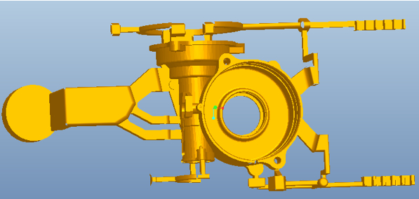 圖1:壓鑄件實體三維模型 根據分型面的選擇原則,結合研究對象的結構特點,分型方式見圖2。