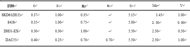 表1:模具鋼成分 2、設備選擇及試驗方法 壓鑄過程的循環(huán)如下:打開模具,取出壓鑄件,向型腔噴水溶性脫模劑,吹干型腔,合模,壓鑄。因此壓鑄就是一個冷卻(噴水溶性離模劑)加熱(壓鑄)交替循環(huán)的過程。根據(jù)壓鑄工作原理,開發(fā)了相應的試驗儀器,見圖1。