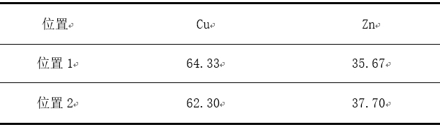 2、試驗結果與分析 2.1 鉍黃銅閥體零件正常部位和貫穿裂紋處斷面的化學成分 使用掃描電鏡和能譜儀對鉍黃銅閥體零件的正常部位和貫穿裂紋處斷面的化學成分進行選區分析,結果見表1和表2。在使用能譜儀進行定性分析時,試驗所用的能譜儀的檢測下限約為0.1%。在閥體零件的正常部位處沒有檢測到Bi元素的存在,說明在所測正常部位區域Bi元素的含量<0.1%;而在閥體零件存在貫穿裂紋的斷面處Bi元素的含量為3%~4%。比較Bi元素在正常部位和存在裂紋部位的所測含量,說明鉍黃銅閥體零件在低壓鑄造時Bi元素發生了嚴重的區域偏析。
