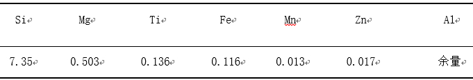 表1:ZL114A合金的化學成分 wb/%