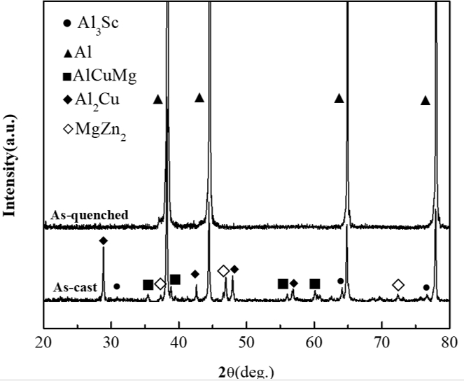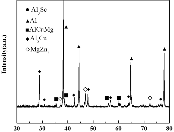 圖5:Al-5Zn-2Mg-1Cu-0.2Sc合金的XRD圖