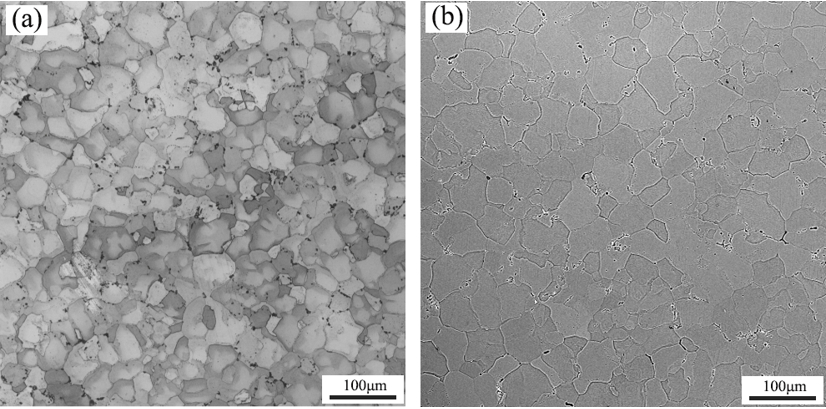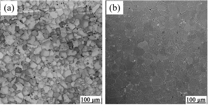 ![]() 原標題:流變擠壓鑄造Al-5Zn-2Mg-1Cu-0.2Sc合金組織與力學性能研究 摘要:采用流變擠壓鑄造技術(shù)制備了Al-5Zn-2Mg-1Cu-0.2Sc合金,通過拉伸試驗、SEM和TEM等方法研究了澆注溫度對半固態(tài)漿料、流變擠壓鑄造合金組織和力學性能的影響。結(jié)果表明,隨著澆注溫度的降低,半固態(tài)漿料和流變擠壓鑄造合金初生α-Al相形貌逐漸轉(zhuǎn)變?yōu)榻蛐危诰Ы绺浇龀龅牡诙喾植荚絹碓骄鶆颍骄Я3叽鐪p小,圓整度增加。當澆注溫度為700 ℃時,半固態(tài)漿料初生相尺寸最小,約為35 μm,平均形狀因子約為0.49,流變擠壓鑄造后合金平均晶粒尺寸約為43 μm。流變擠壓鑄造合金力學性能隨著澆注溫度的降低逐漸增加。合金經(jīng)過470 ℃×10 h+500 ℃×2 h雙級固溶后,大部分第二相溶于基體。120 ℃×24 h時效處理后,合金的屈服強度達539 MPa,抗拉強度達612 MPa,伸長率達11%。 Al-Zn-Mg-Cu系(7xxx系)高強鋁合金具有比強度高、塑性和耐腐蝕性好、易于機械加工等特點,廣泛應用于航空航天、交通運輸、機電儀表等領域。7xxx系鋁合金是一類典型的變形鋁合金,在實際生產(chǎn)中通常采用擠壓、軋制和鍛造等塑性變形方法成形。由于合金元素含量高、凝固溫度范圍寬,鑄造過程中易出現(xiàn)熱裂、偏析和組織粗大等缺陷,難以通過傳統(tǒng)液態(tài)成形制備復雜結(jié)構(gòu)零部件,這嚴重限制了該類高性能鋁合金的應用范圍。隨著我國新能源汽車的發(fā)展,對結(jié)構(gòu)件輕量化、高性能、高可靠性的需求越來越迫切,采用7xxx系高強鋁合金“以鋁代鋼”制備底盤與動力系統(tǒng)等關(guān)鍵復雜結(jié)構(gòu)件是實現(xiàn)汽車輕量化的重要途徑,開發(fā)7xxx系鋁合金“以鑄代鍛”的新型液態(tài)/半固態(tài)成形技術(shù)也越來越受到國內(nèi)外的關(guān)注。 流變擠壓鑄造技術(shù)具有成形溫度低、凝固收縮小、組織致密度高、鑄造缺陷少等優(yōu)勢,可制備形狀復雜、內(nèi)部質(zhì)量和尺寸精度要求高的金屬零件,該技術(shù)在7xxx系高強鋁合金上的應用有望解決其鑄造成形性差的難題,實現(xiàn)“以鑄代鍛”的目標。近年來,國內(nèi)外對于7xxx系鋁合金的流變擠壓鑄造研究主要集中于熔體的細化與均勻化處理、半固態(tài)漿料的制備方法及工藝參數(shù)、合金強化機制、流變鑄造工藝與數(shù)值模擬等方面。目前,相關(guān)研究主要通過改變制漿方法、添加復合細化劑制備高熔體質(zhì)量漿料,研究成形壓力、保壓時間等工藝參數(shù)對7xxx系鋁合金組織的影響,但流變成形7xxx系合金的力學性能普遍不如鍛造成形和觸變成形。另一方面,在7xxx系鋁合金中復合添加Mn、Ti、Cr、Sc、Zr等元素,雖然可以提高流變成形合金強度,但其塑性相對較低,限制了其工業(yè)化應用。 本研究從Sc微合金化、流變成形溫度控制和熱處理3方面出發(fā),提高流變擠壓鑄造7xxx系合金的強韌性。采用滾筒機械攪拌裝置制備Al-5Zn-2Mg-1Cu-0.2Sc合金半固態(tài)漿料,研究澆注溫度對合金半固態(tài)漿料、流變擠壓鑄造和熱處理組織性能的影響,旨在為7xxx系鋁合金流變成形技術(shù)的開發(fā)與應用奠定理論和實踐基礎。 1、試驗材料與方法 將鋁銅、鋁鈧、鋁錳、鋁鉻、鋁鈦硼中間合金,純鋅錠、純鎂錠等加入井式電阻爐進行熔煉、精煉制備Al-5Zn-2Mg-1Cu-0.2Sc合金。通過立式四柱型油壓機(YC27-63 800KN)對合金進行流變擠壓鑄造,模具預熱溫度為250 ℃,壓力為120 MPa,保壓時間為30 s,澆注溫度為700~740 ℃。 采用機械攪拌設備制備半固態(tài)漿料,包括機械攪拌系統(tǒng)和超敏溫度測量系統(tǒng),見圖1。機械攪拌系統(tǒng)可調(diào)節(jié)筒體轉(zhuǎn)速、預熱溫度和傾角,超敏測溫系統(tǒng)可以對流出桶外的漿料快速測溫。試驗參數(shù)如下:機械攪拌圓筒預熱溫度為250 ℃,轉(zhuǎn)速為60 r/min,傾角為30°,制漿澆注溫度為700~760 ℃,漿料通過銅模冷卻。