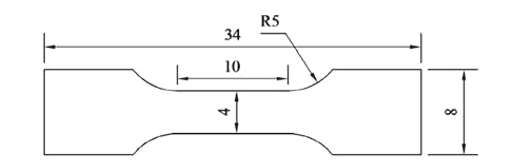 表1:實驗鋼的化學成分(wb/%) 在YFA12/15G-Y型箱式電阻爐中進行熱處理,其采用的熱處理工藝如下:①在1100 ℃保溫2 h隨爐冷至室溫進行均勻化退火②在880 ℃加熱保溫30 min,水淬;③分別在200、250 ℃回火2 h。將實驗鋼經(jīng)線切割加工成尺寸為10 mm×10 mm×6 mm的試樣,將其在砂紙上打磨,機械拋光后,在試樣表面滴加4 %的硝酸酒精溶液進行腐蝕,腐蝕時間為15 s,通過光學顯微鏡和鎢燈絲掃描電鏡(SEM)對腐蝕后試樣進行觀察。在布洛維光學硬度計上測量實驗鋼硬度值,試驗力為750 N,在每個試樣上平均取5個點,取平均值作為該試樣的硬度值。干滑動摩擦試驗在立式 MM-W1萬能摩擦磨損試驗機上進行,試驗采用銷盤接觸方式,結(jié)構(gòu)示意圖見圖1,其中銷的直徑為6 mm,高度為8.5 mm。摩擦副選用GCr15圓盤 (硬度61HRC) ,載荷為60 N,旋轉(zhuǎn)半徑為10 mm,轉(zhuǎn)速為100 r /min,磨損率計算公式為E = (E0-E1) / S,其中,E0為摩擦試驗前試驗銷的質(zhì)量,E1為摩擦試驗后試驗銷的質(zhì)量,S為磨損距離。對3種不同狀態(tài)實驗鋼進行電解分離萃取試驗,從而得到3種不同狀態(tài)下的析出物,進行稱重。使用375 mL H2O+120 mL HCL和16 g檸檬酸顆粒混合而成的溶液進行電解萃取,經(jīng)沉淀、離心和烘干后將萃取出的析出物進行XRD分析,測試角度范圍為10°~90°,掃描速率為4°/min。通過線切割將熱處理后實驗鋼加工成非標準拉伸試樣,其標距為10 mm,厚度為1 mm,具體尺寸見圖2,隨后使用CMT5105型電子萬能試驗機進行室溫下的拉伸試驗。