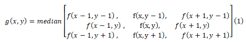 式中,g(x,y)是經(jīng)過中值濾波器后得到的灰度值;median是取矩陣中值的操作。 (2)均值濾波器