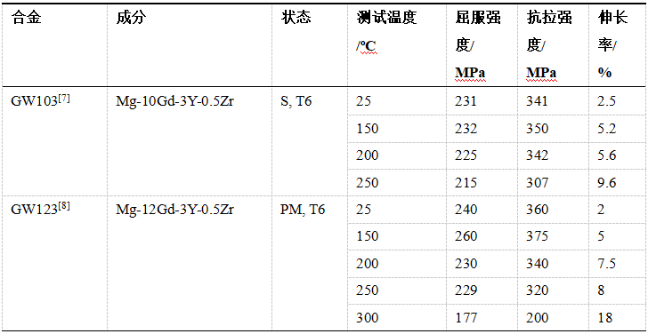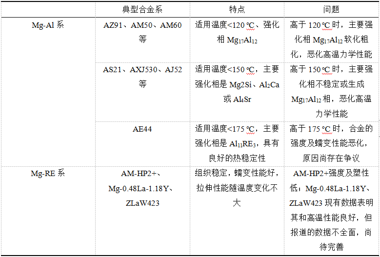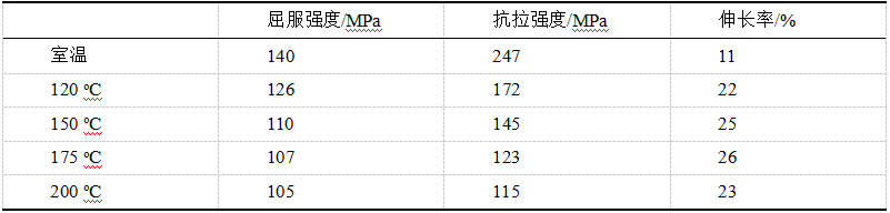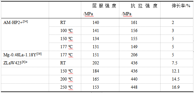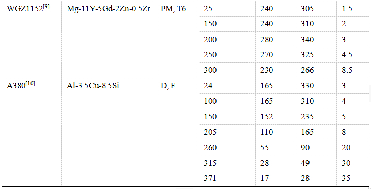 表8 :典型Mg-RE壓鑄鎂合金力學性能