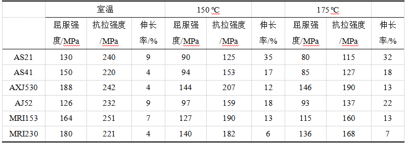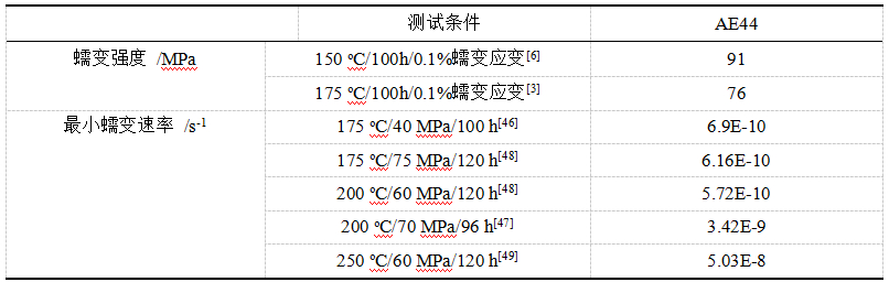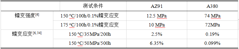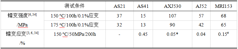 表5:典型壓鑄合金AS、AX、AJ和MRI系蠕變性能