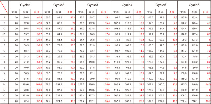 圖16 完整數據圖表 6.總結 根據實際生產條件,詳細分析模具的熱量來源與熱量走向,找出可影響溫度熱量變化的可控因素,針對目標與需求,進行具體調整。 在產品結構不變的情況下,調整與優化模具溫度,對產品變形和產品的應力分布有著明顯的改善效果。