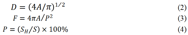 圖1 壓鑄件示意圖及熱裂評估試樣尺寸 制備熱裂傾向評定試樣后,在低倍光學顯微鏡下觀察試樣熱裂程度和數量,并將結果統計繪制關系曲線圖。使用光學顯微鏡和配有EDS的掃描電鏡觀察試樣微觀組織。為進行孔隙統計,沿試樣的軸線通過線切割剖開,并通過Image J軟件對孔洞等效直徑和形狀因子統計分析。等效直徑D、形狀因子F和孔隙率P的定義如下: