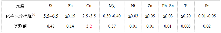 圖8 主軸承蓋試制樣件 采取三級(jí)固溶處理的熱處理方案,結(jié)合有關(guān)研究[4],選擇(470 ℃×4 h)+(500 ℃×160 min)+(510 ℃×160 min)的三級(jí)固溶處理,然后自然時(shí)效12 h,人工時(shí)效170 ℃×10h的熱處理方案。由于該319S鋁合金在高溫固溶時(shí),可能因工藝不當(dāng)或爐溫控制精度不夠,在晶界處出現(xiàn)過(guò)燒孔洞類(lèi)缺陷,所以在熱處理過(guò)程中應(yīng)嚴(yán)格按照熱處理工藝參數(shù)執(zhí)行,并嚴(yán)格控制爐體實(shí)際溫度不超過(guò)設(shè)定值。 4、鋁合金主軸承蓋鑄件質(zhì)量檢測(cè) 從主軸承蓋成品毛坯上取樣進(jìn)行拉伸性能試驗(yàn),結(jié)果見(jiàn)表4。