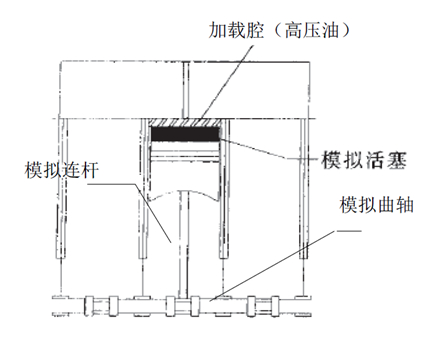 圖10 鑄件X光探傷和熒光探傷結(jié)果 5 鋁合金主軸承蓋臺(tái)架試驗(yàn) 參考JB/T 13203 ,對(duì)半固態(tài)鋁合金主軸承蓋進(jìn)行臺(tái)架試驗(yàn)驗(yàn)證,試驗(yàn)在六路液壓油加載管路試驗(yàn)臺(tái)上運(yùn)行,設(shè)計(jì)試驗(yàn)工裝示意圖見(jiàn)11。試驗(yàn)將主軸承蓋、螺栓、定位環(huán)和主軸瓦按實(shí)際工況裝配在缸體上,并通過(guò)模擬活塞、連桿及曲軸與試驗(yàn)臺(tái)裝配。
