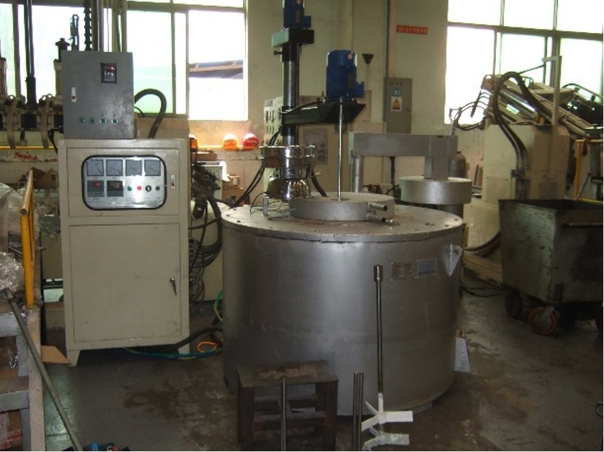 圖1 A356-B4C復(fù)合材料壓鑄成形設(shè)備 基于流體力學(xué)理論和DPM模型,構(gòu)建PAMCs壓鑄充型過程的多相流數(shù)值模擬模型。在模型中,A356鋁液作為連續(xù)相而B4C顆粒作為分散相處理,描述顆粒運動方程如下: