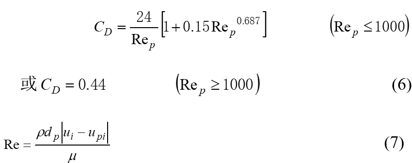 所構(gòu)建的模型中將增強顆粒假定為近球形,因此流體拖拽力系數(shù)CD表達式為: