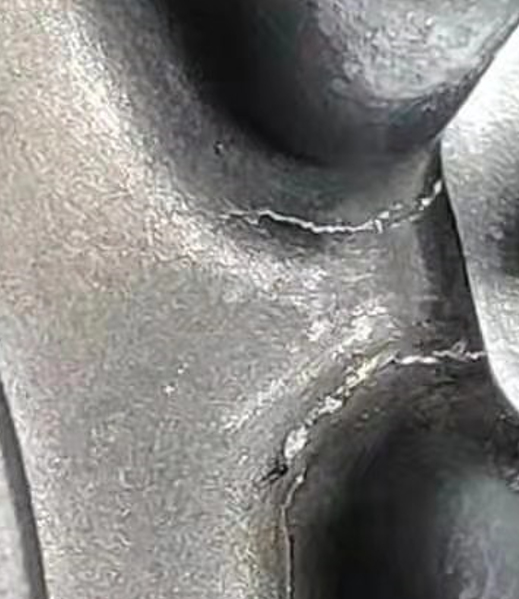 輔助氮化或者涂層,可以進一步改善沖蝕現象。 二、龜裂:由熱交變應力,拉應力,塑性應變綜合作用引起的失效形式。如圖4所示,產品表面呈現缺料,裂紋缺陷。