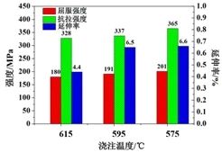 圖7 澆注溫度對Al-Si-Mg鋁合金半固態(tài)流變壓鑄件力學(xué)性能的影響