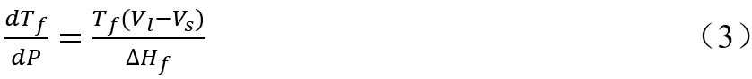 一方面,根據(jù)熱力學(xué)理論,壓力的變化會導(dǎo)致合金平衡凝固溫度的變化,兩者之間的函數(shù)關(guān)系滿足Clausius-Clapeyron方程: